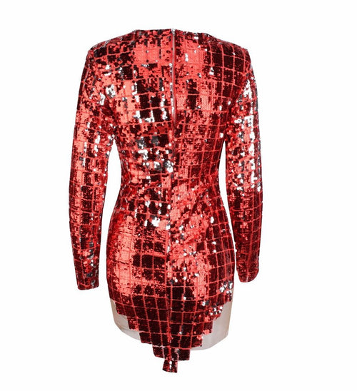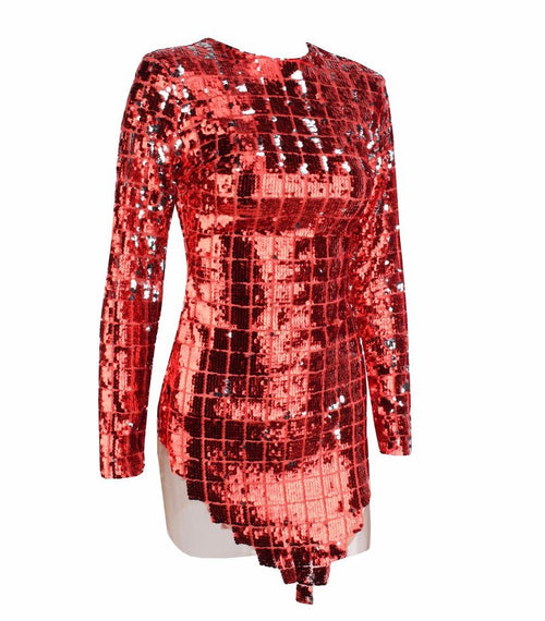 Hayden Red Sequin Long Sleeve Sequin Mini Dress